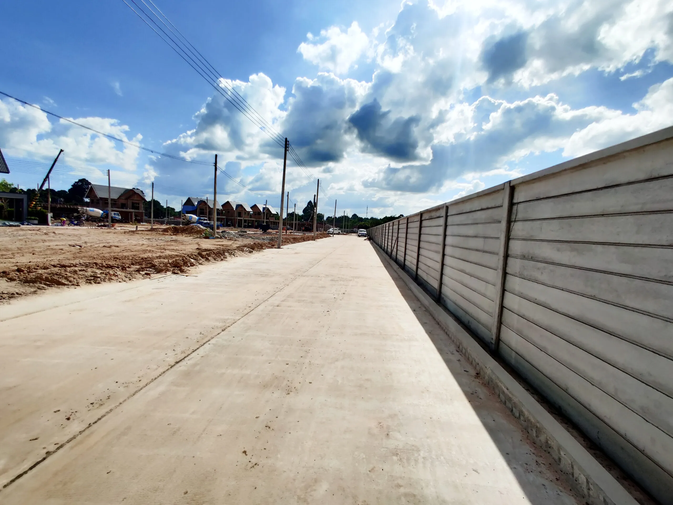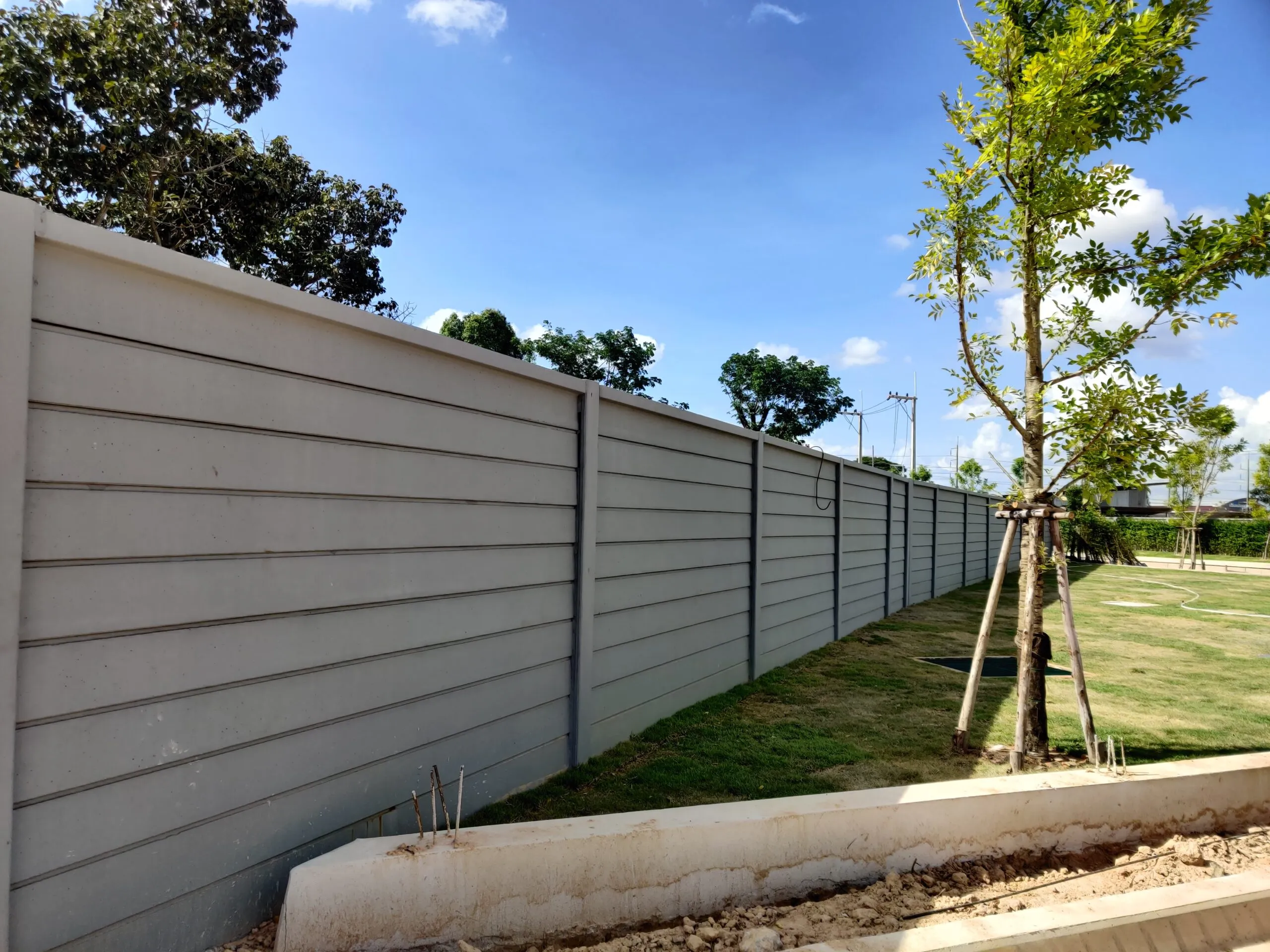 รั้วคอนกรีตสำเร็จรูปอัดแรง สูง 2 เมตร ยาว 2,044 เมตร และกำแพงกันดิน 1,934 เมตร